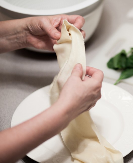 Each time the dough is passed through the rollers, the texture becomes finer, stretchier and less lumpy.