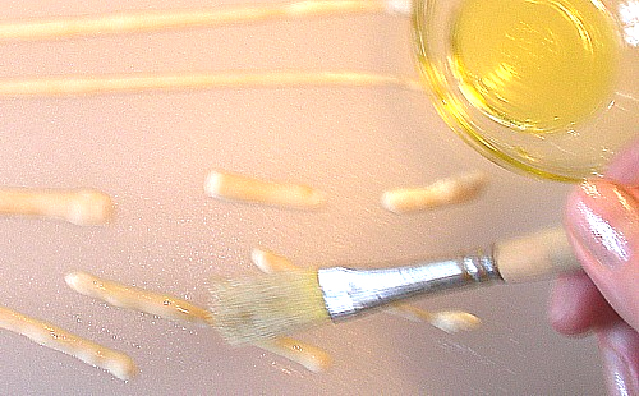 Brush dough with a little olive oil and sprinkle with a tiny pinch of salt.