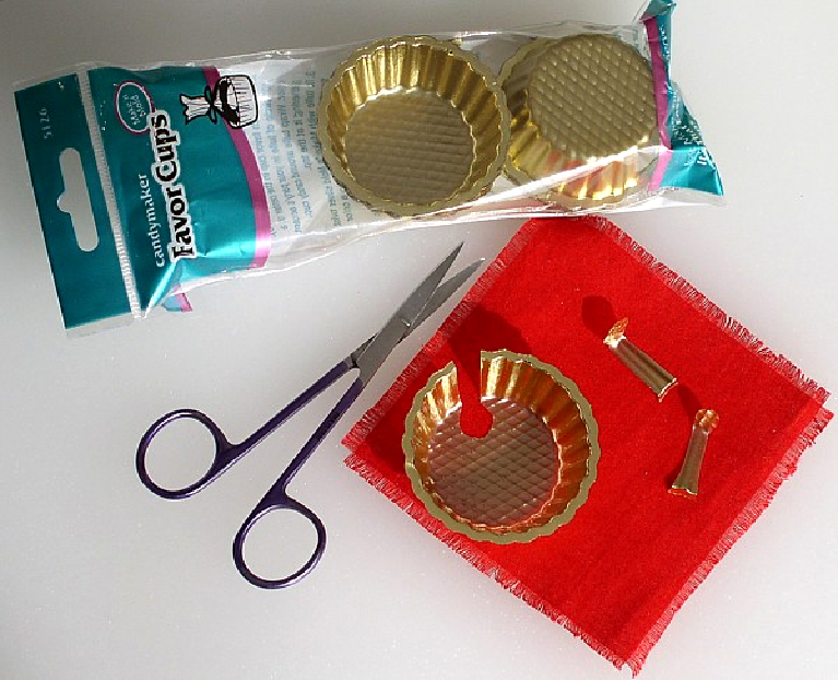 Cut a spoon shape from the side and bottom of a gold candy cup