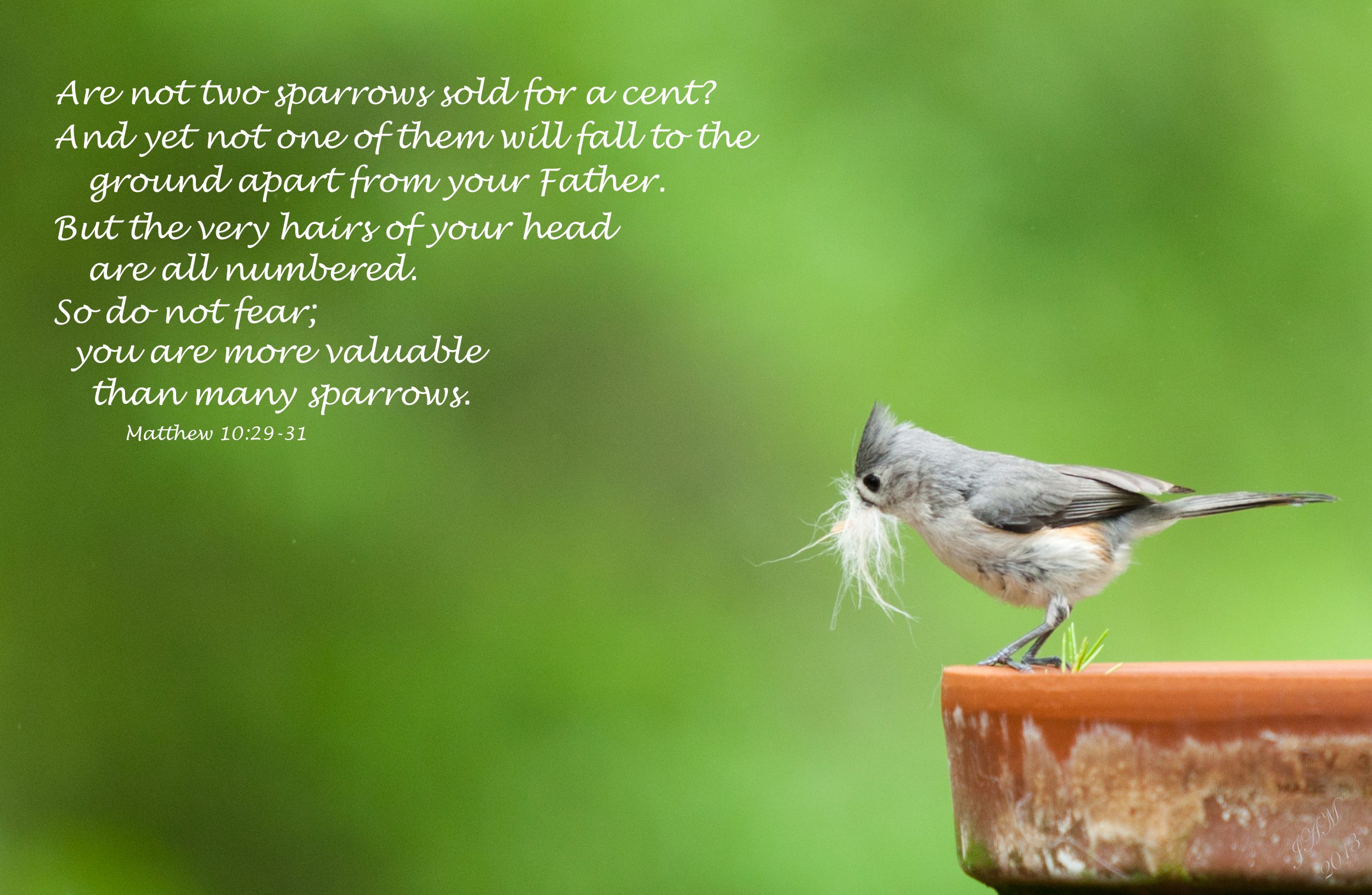 The tiny Tufted Titmouse flitted around our deck gathering bits of cat hair in its beak to feather its nest.