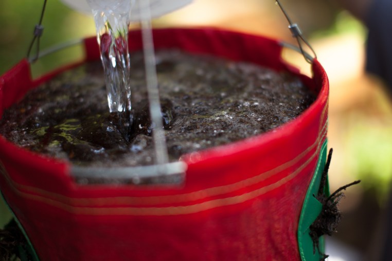 We planted strawberries in the hanging planter