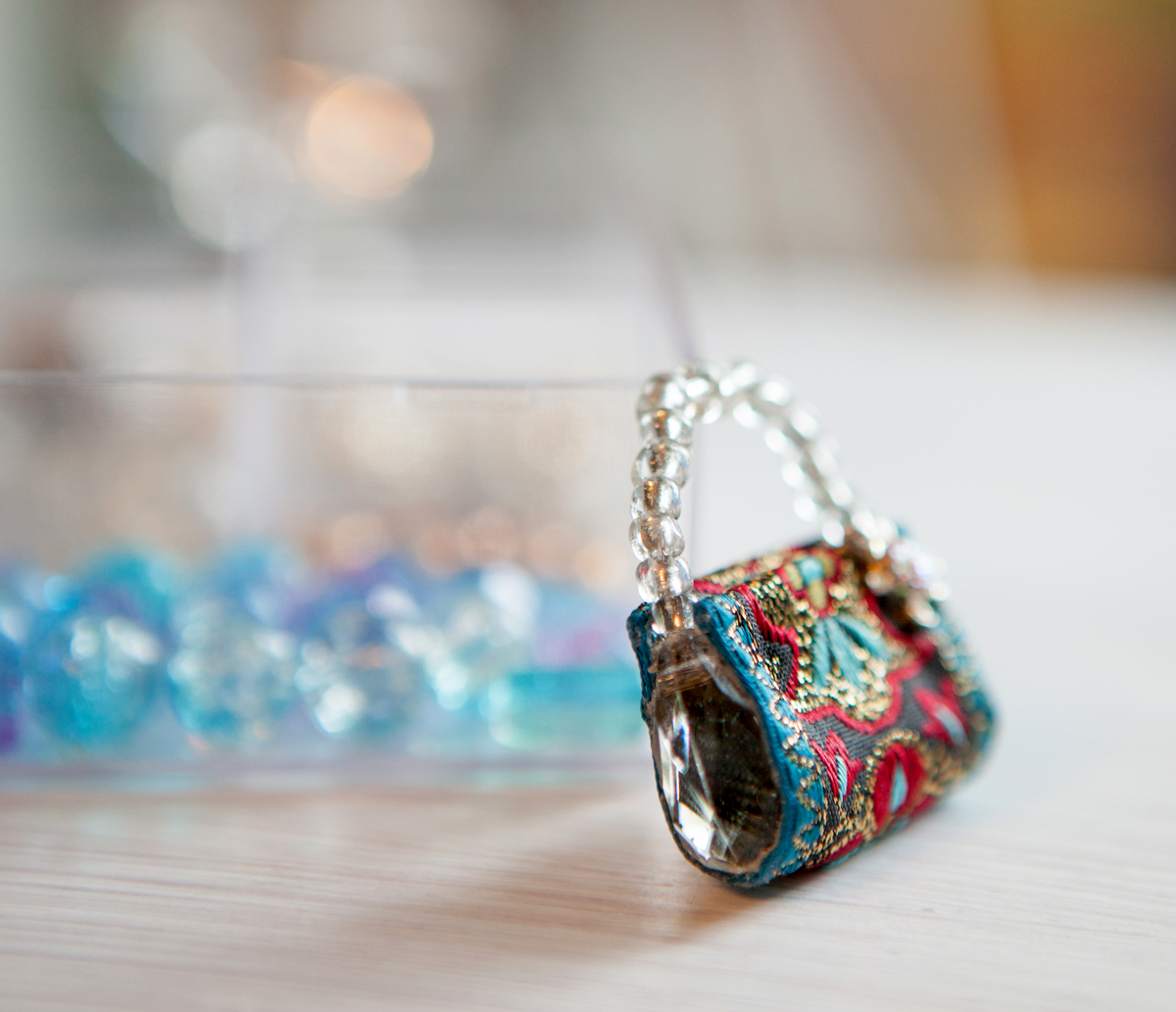 The light passes through the gems in the sides of this tiny clutch purse.