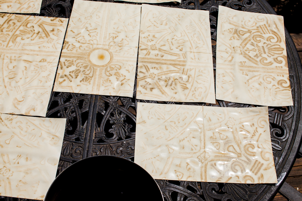 The coffee pooled on the top of the paper and the pattern of the table magically showed up on the surface of the paper.