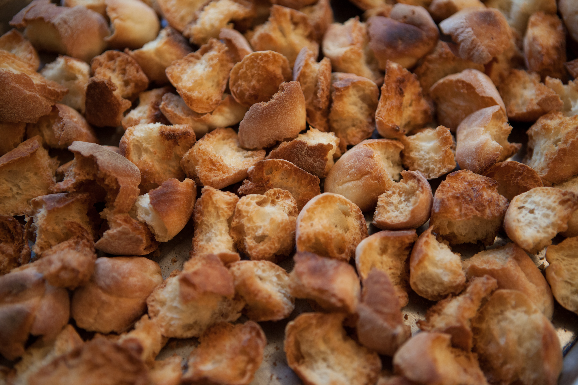 Torn Bread Crisps after baking. The quantity shown here is two baking sheets worth.