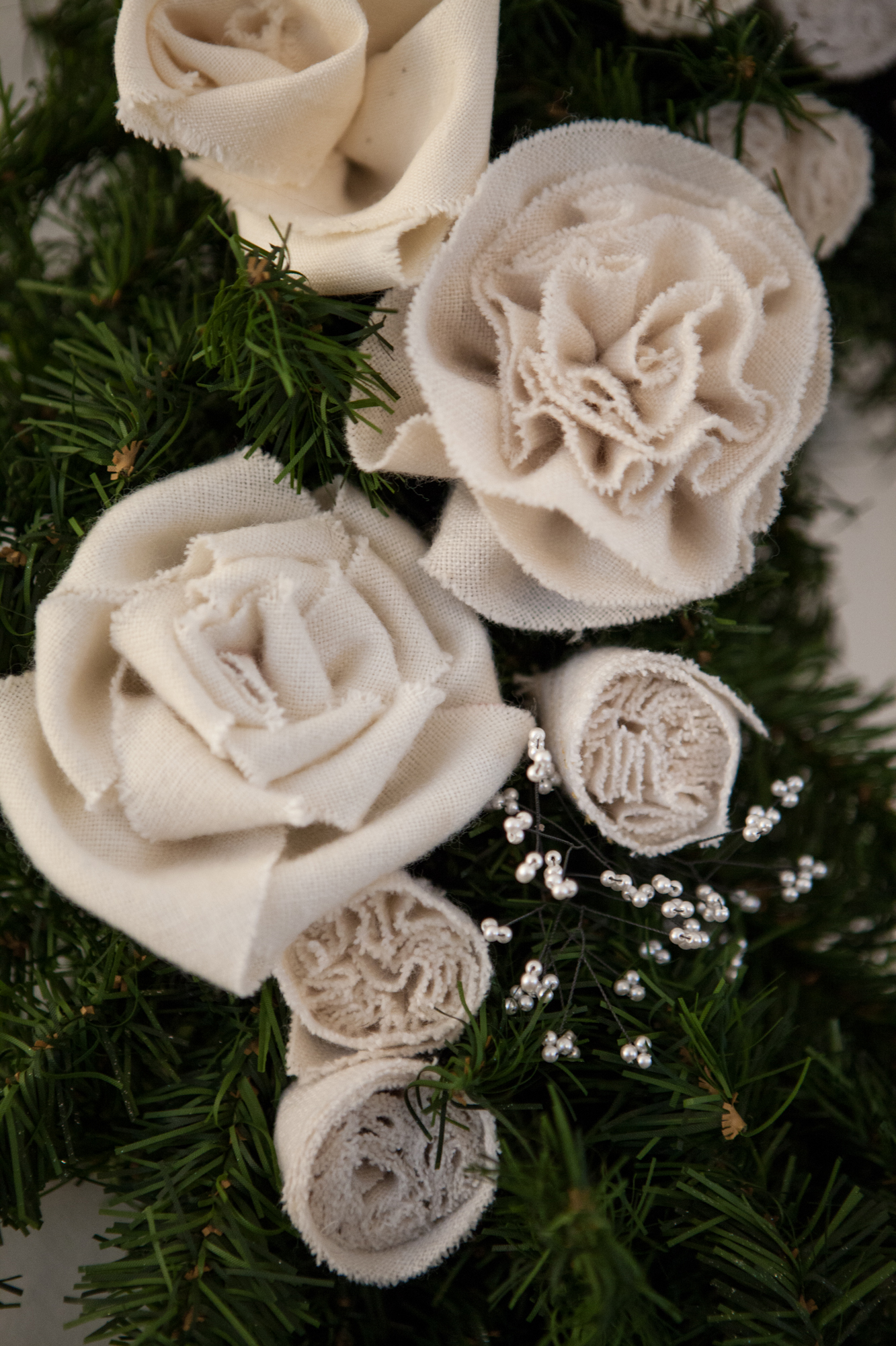 Roses and rosettes made from the wool interlinings of men’s ties.