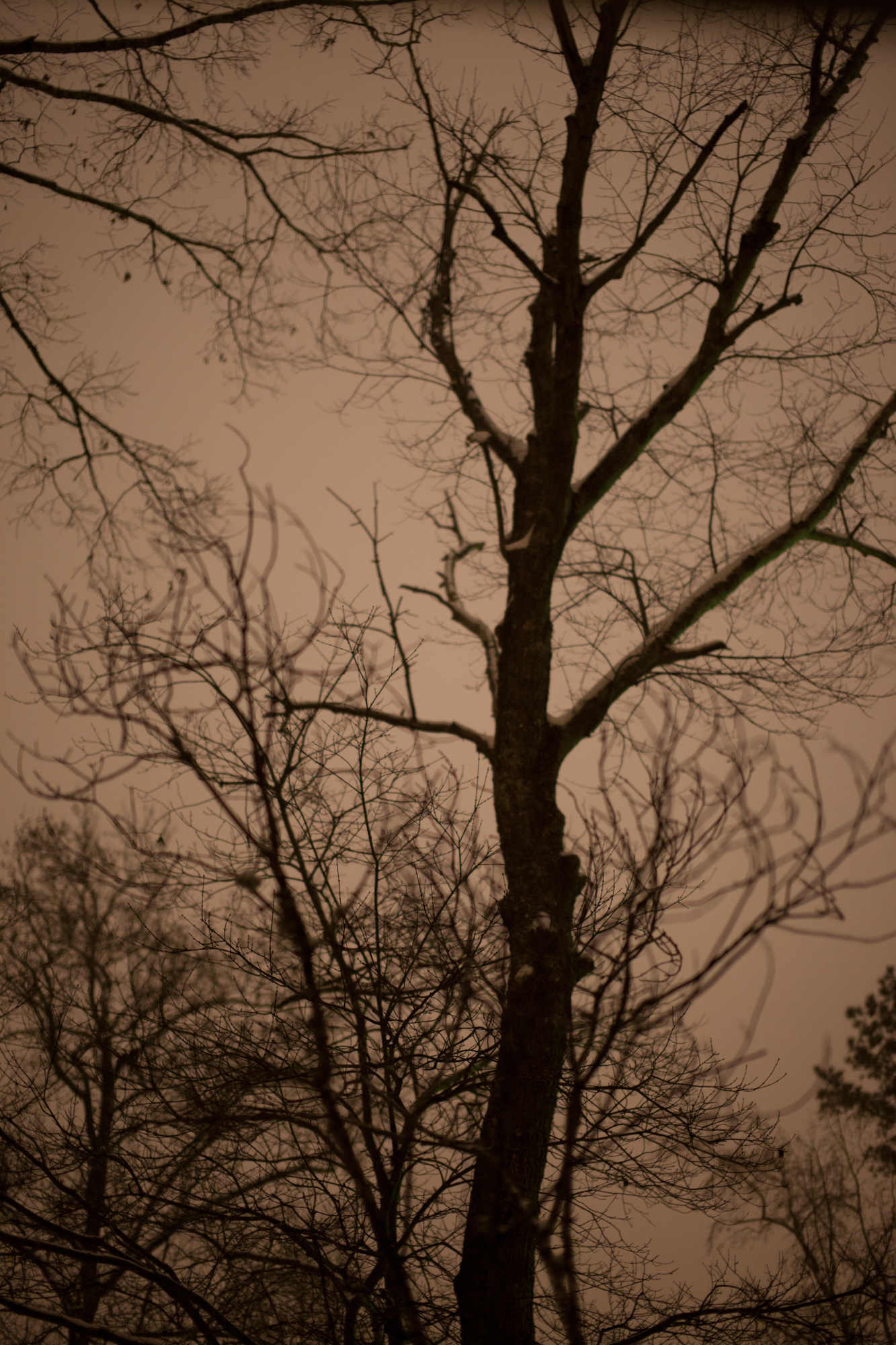 Winter snow always makes the sky an unusual color as the city lights light up the underside of the clouds.
