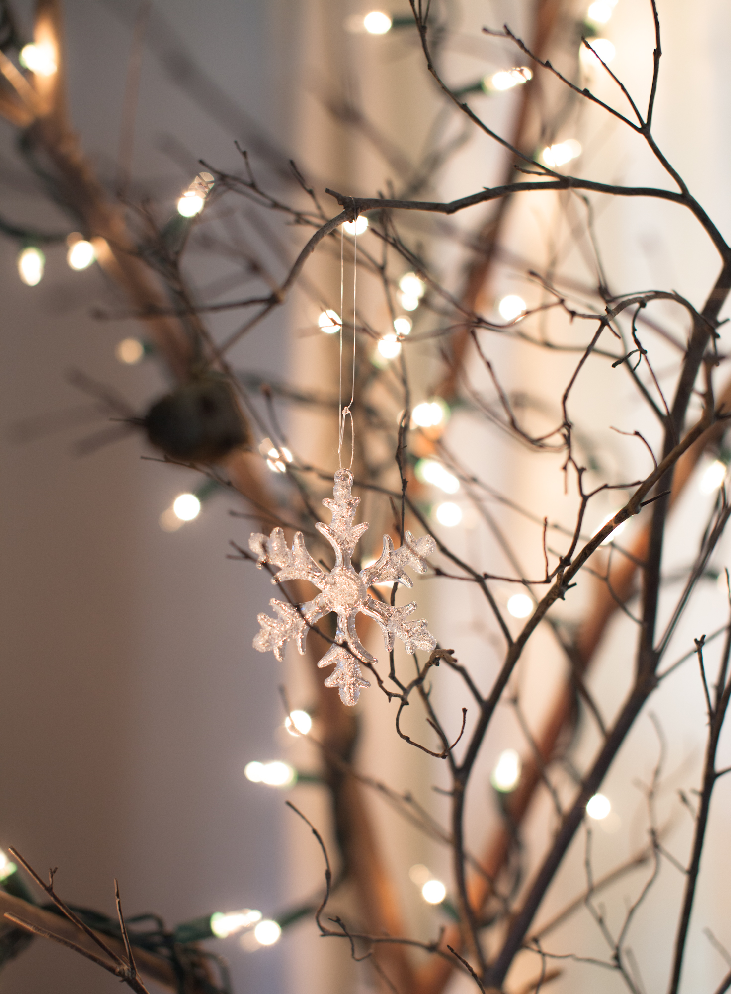 The bare brances were in the corner through winter, strung with lights and crystal snowflakes just to add brightness to the room.