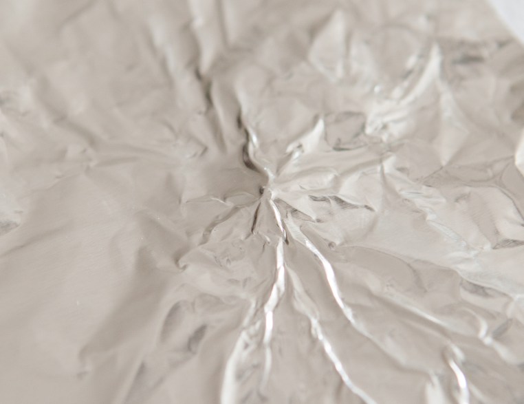 The foil is gently pressed down around the bead to create a little mound.