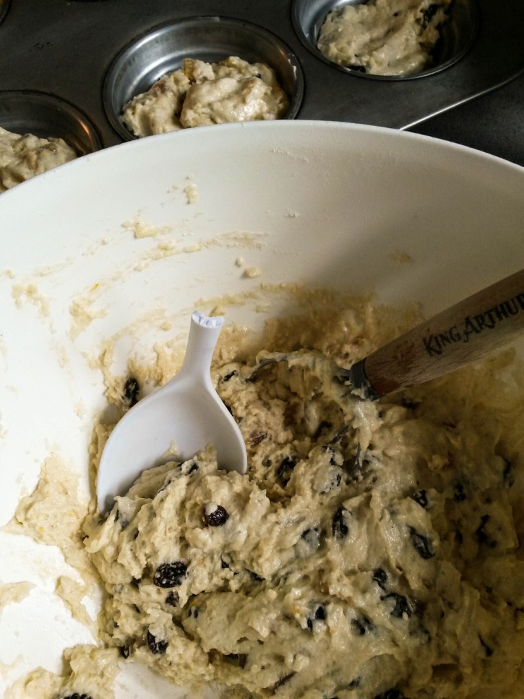 Scooping the muffin batter with the broken spoon, just because it’s the perfect size for scooping.