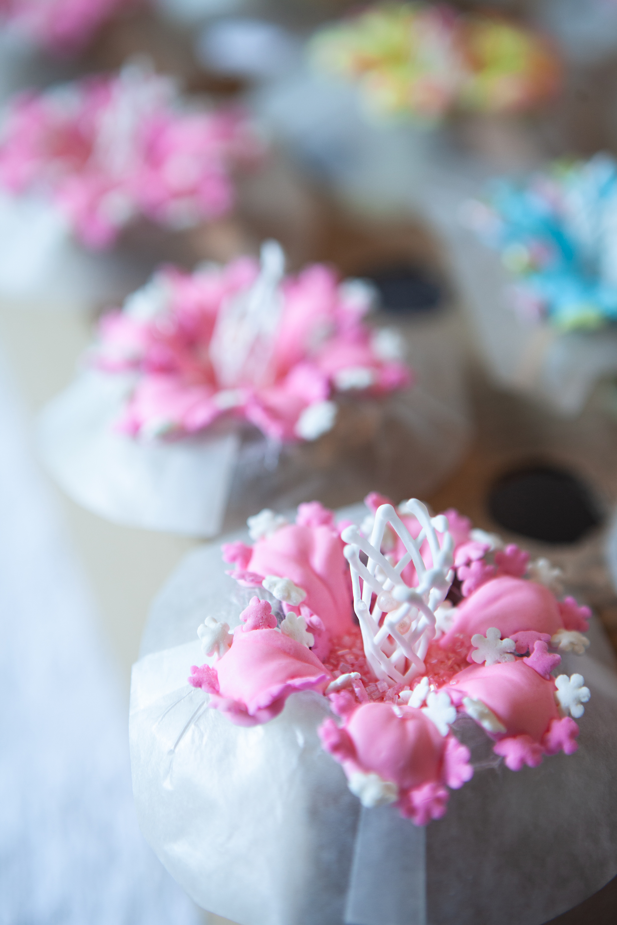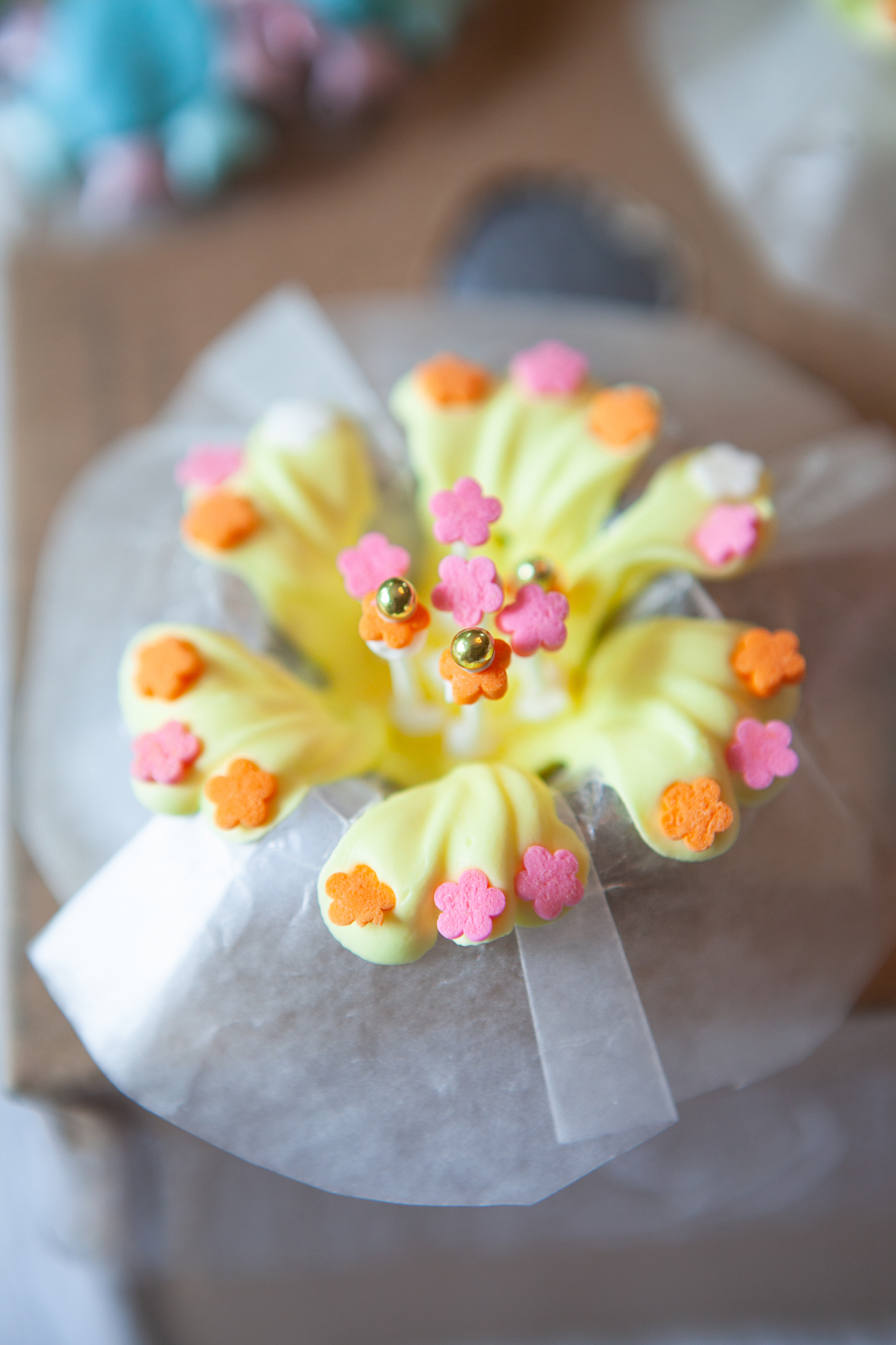 I made these royal icing Fantasy Flowers a couple days ago and they’re almost ready to remove from the wrappers. My granddaughter is turning 10. She and her friends will have fun decorating cupcakes with these flowers, along with smaller flowers and sprinkles.