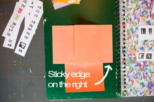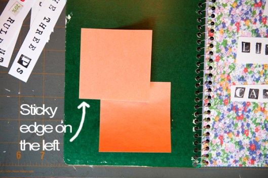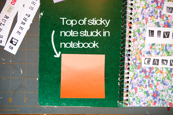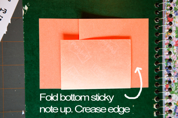 I’m forever losing small notes and scraps that are tucked inside book covers. Today I made a super easy pocket inside my notebook cover. It takes just seconds to create the pocket using three sticky notes.