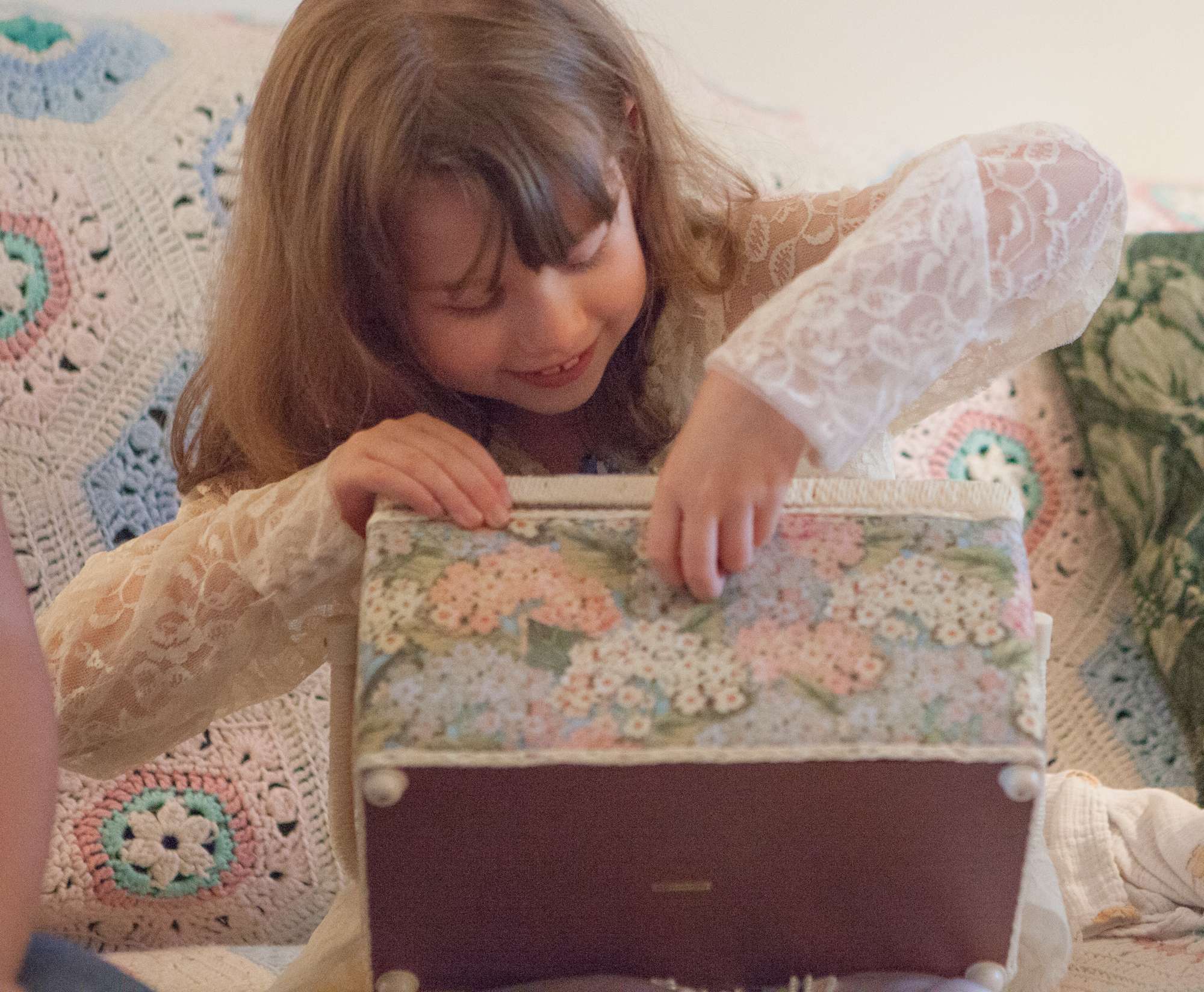 A couple weeks came and went and she turned seven. For her birthday, my mom and I got her a sewing basket filled with notions. She was thrilled with them!
