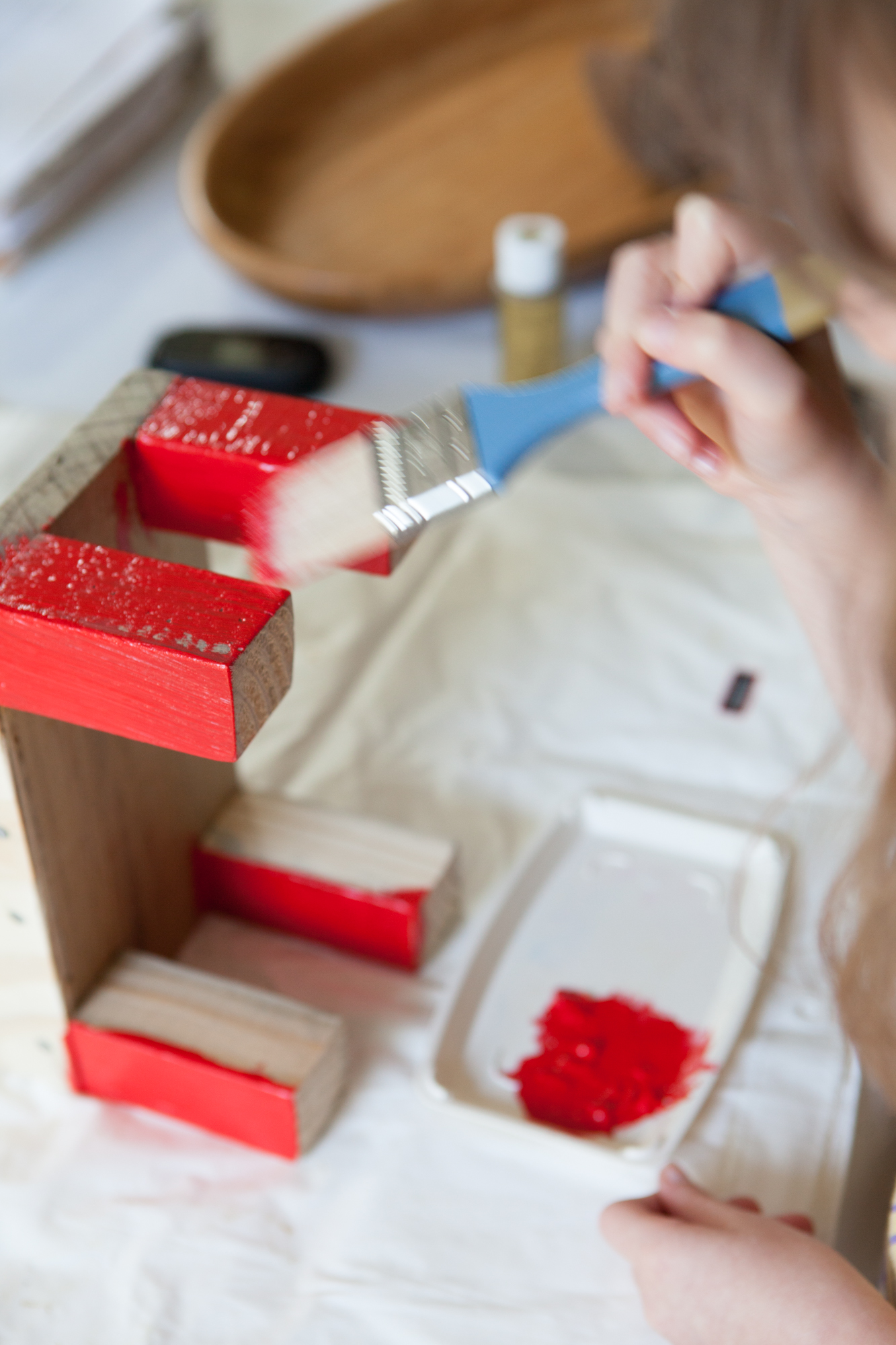 She had to go home but I continued working on the dress. First I made the underskirt from a lovely ruffle fabric. I also drew out the pattern for the throne based on her sketch and Grandpa cut it out and nailed it together.
