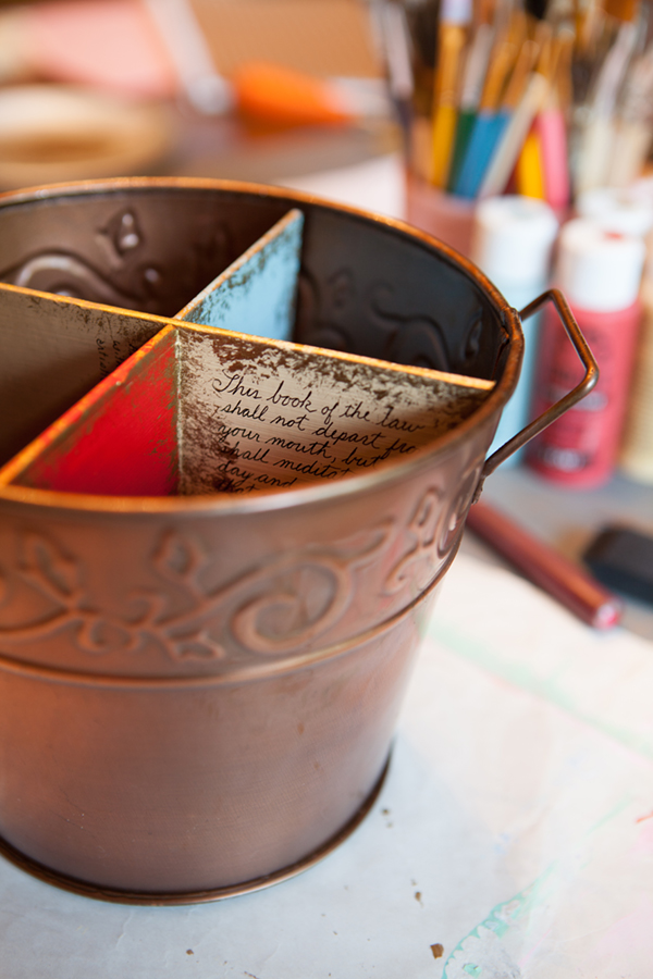 To decorate the “J Book”, I covered the cardboard letter halves with green decorative tissue paper and then stitched the plastic flowers on with embroidery floss.