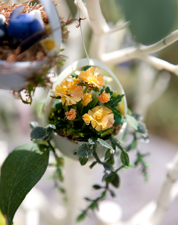 All Sparkled Up, crafts, Easter, Easter decoration, Easter Egg Tree, egg tree, miniature, miniature eggs, miniature flowers, miniature plants