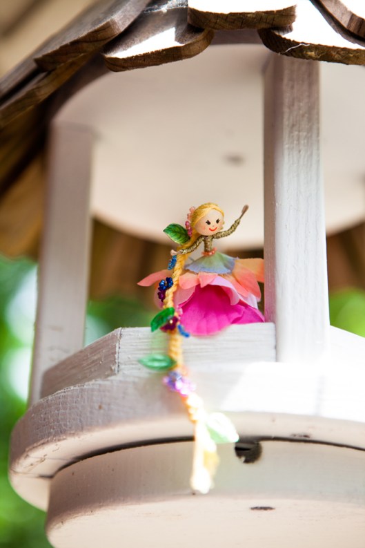 I babysat my granddaughter yesterday and we made Flower Fairies from Klutz Books. After making the first one, she wanted a Rapunzel, with long braided hair. Of course I had to rummage around in my bead collection to find the perfect tiny flower beads to braid into Rapunzel’s hair. I was not able to finish making it before she went home so Rapunzel spent the night at my house, perched on a bouquet of flowers.