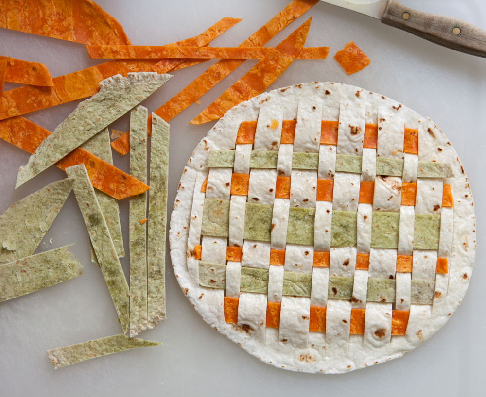 While the soup is simmering, make the Chip Dip Dumplings. Whisk together 3 cups flour, 5 tsp baking powder and 1/4 tsp salt in a bowl. Cut 1/4 cup unsalted butter and 1/4 cup shortening into the dry ingredients until crumbly.