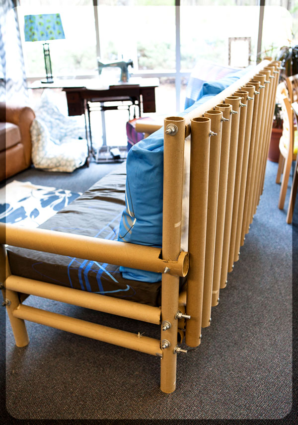 I realize that this item doesn’t feature fabric, but it DOES have to do with Spoonflower… they fashioned a sofa from the leftover tubes that their rolls of fabric come on. That is SO ingenious!
